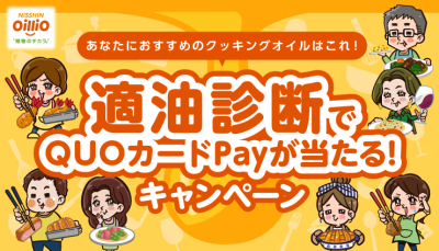 【日清オイリオ】適油診断&対象商品購入でオリジナルQUOカードPay1,000円分が1,000名様に当たる「適油診断でQUOカードPayが当たる!キャンペーン」が11日4日(火)より開催