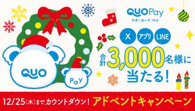 クリスマスまでカウントダウン!抽選で合計3,000名様に「クオとペイ」オリジナルQUOカードPayやオリジナルグッズが当たる「アドベントキャンペーン」が12月19日(金)より開催