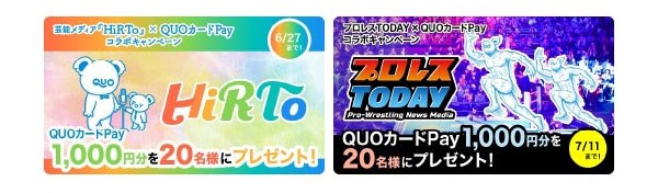 「HiRTo」(もしくは「プロレスTODAY」)の公式アカウントとQUOカードPay公式アカウントのWフォローとポストを参加条件としたキャンペーンで、当選者にはQUOカードPay1,000円分をプレゼント。