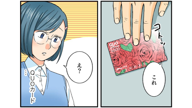 職場の同僚が急に家の事情で退職することになり、いつもお世話になっていたこともあり、なにかお礼をと思っていたので、QUOカードを購入し、お渡ししたところとても喜ばれました。