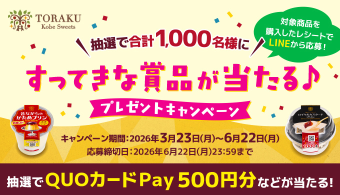 Wチャンスで800名様に500円分が当たる!トーラク ご褒美デザートキャンペーン