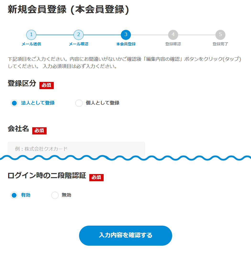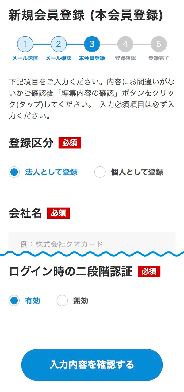 個人として登録された場合、会社名・部署名が表示されませんのでご注意ください。 - セキュリティ保護のため、パスワードの使いまわしはお控えください。