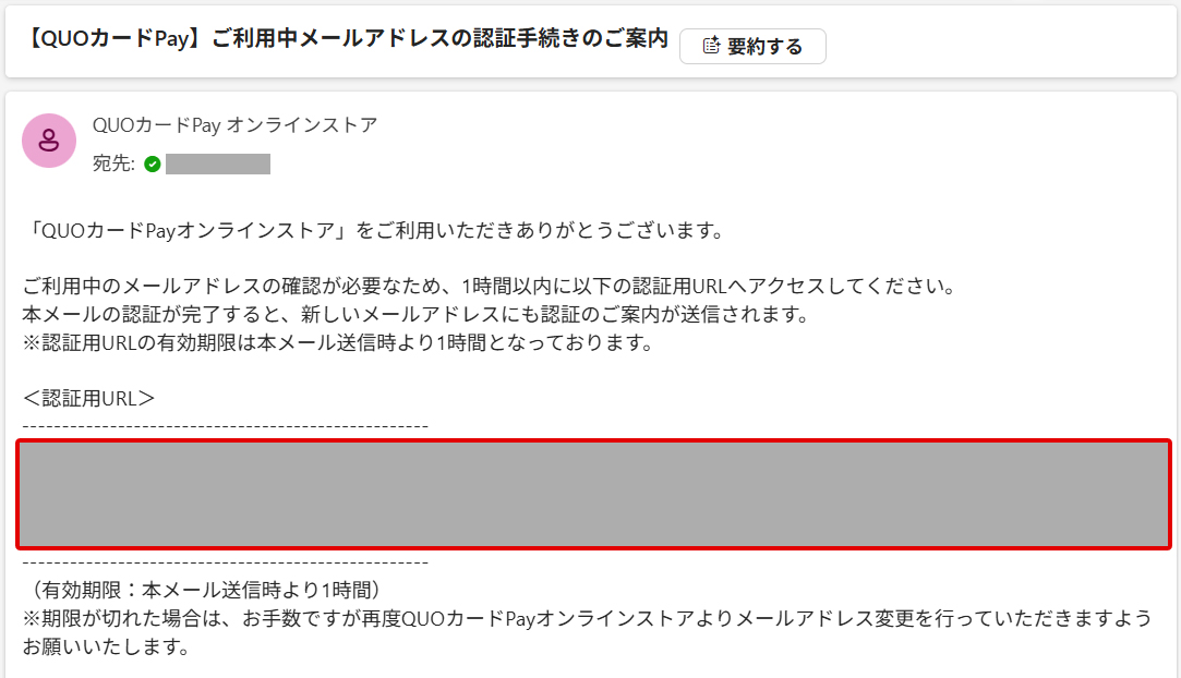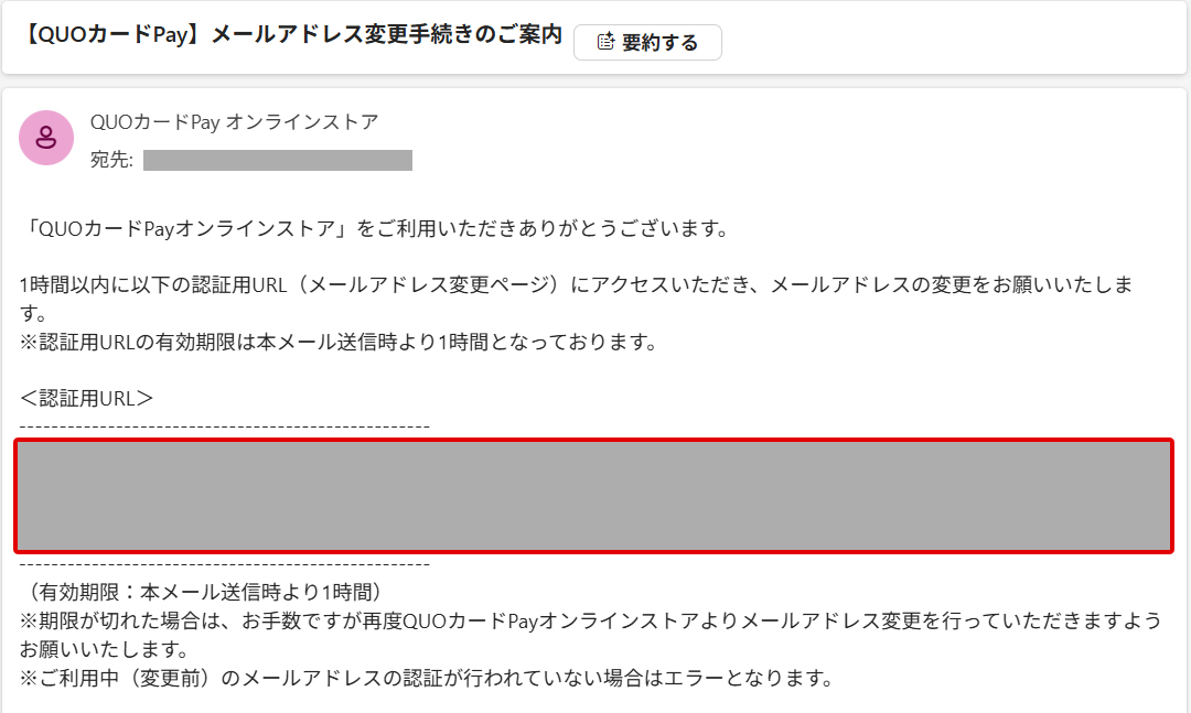 - 認証用URLの有効期限は1時間となりますのでご注意ください。