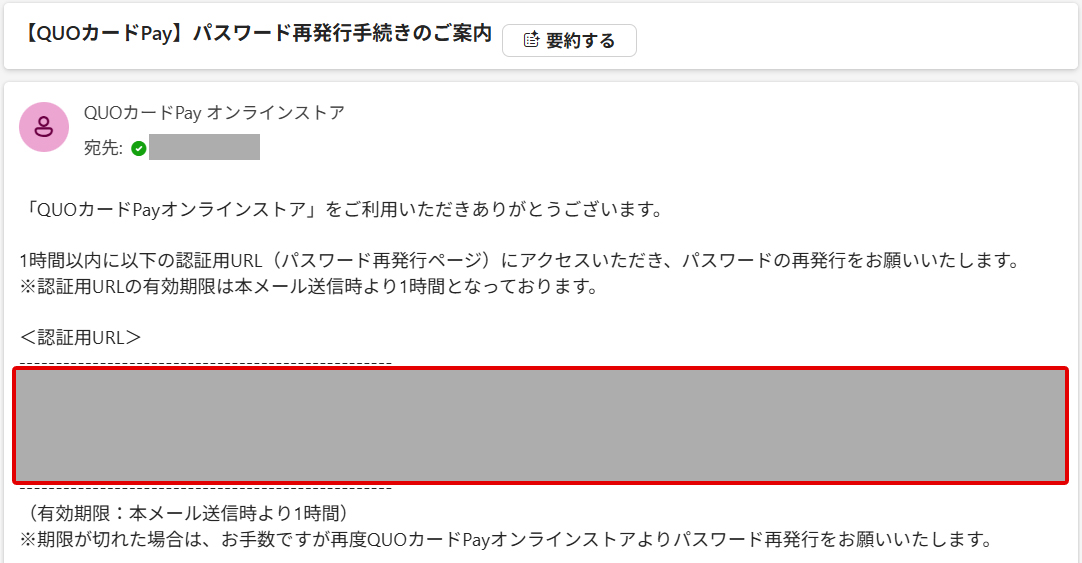 - 認証用URLの有効期限は1時間となりますのでご注意ください。