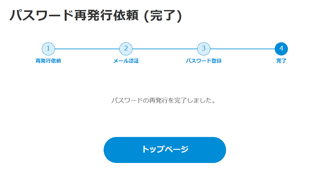 マイページ「パスワード変更(再発行依頼)」メニューより、ログインパスワードの再発行が可能です。