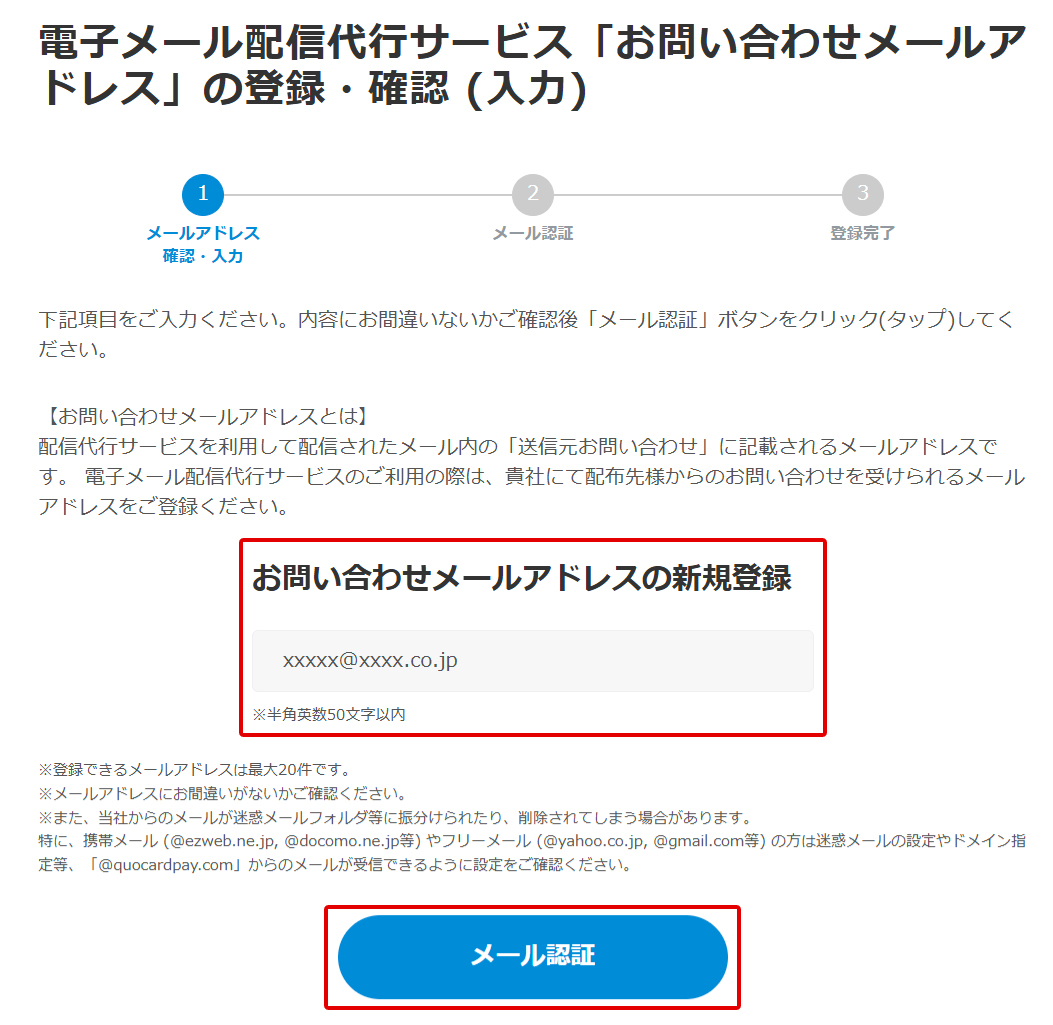 電子メール配信代行サービス「お問い合わせメールアドレス」の登録・確認