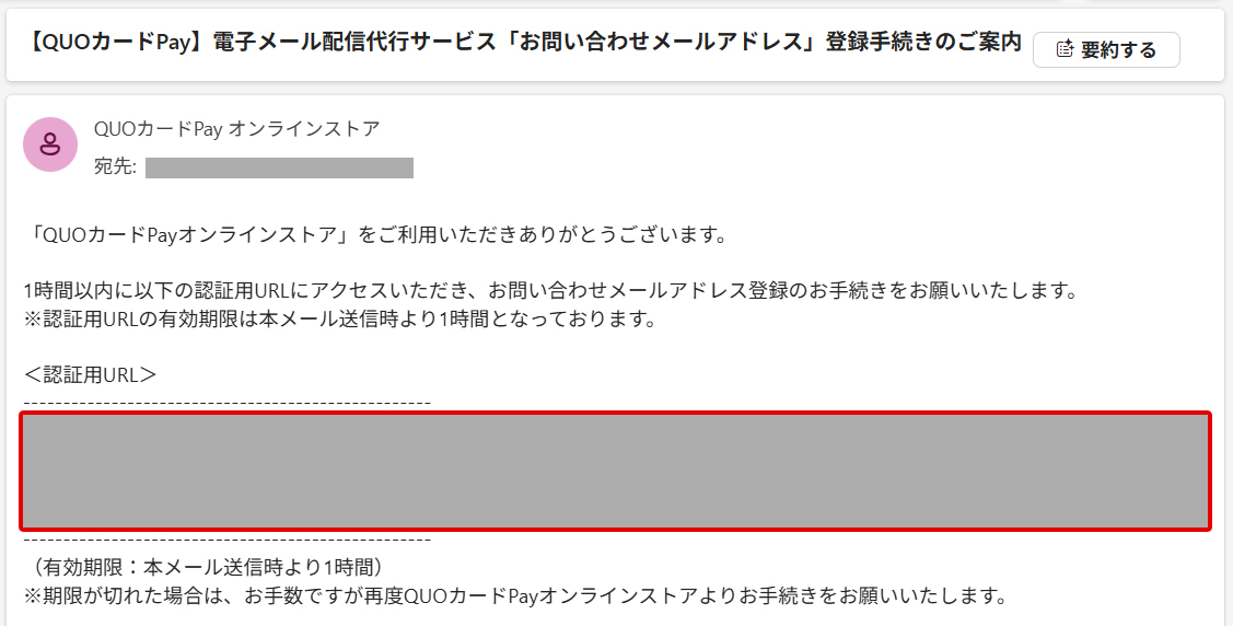 - 認証用URLの有効期限は1時間となりますのでご注意ください。