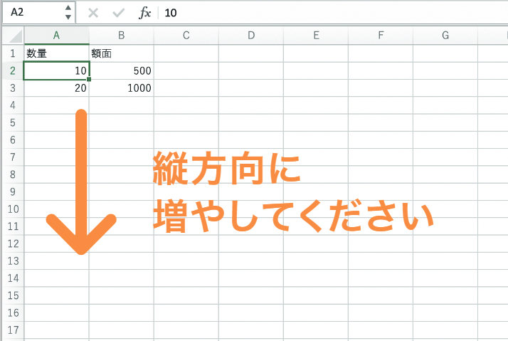 Excel(.xls, .xlsx)またはCSV(.csv)形式の専用ファイルで、注文する額面と数量を一括で登録できます。