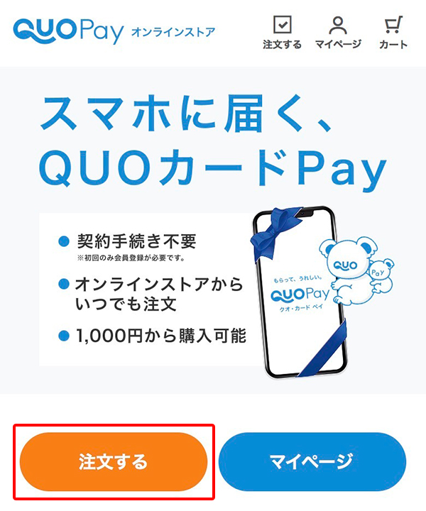 トップページの「注文する」ボタンから注文画面へ移動します。