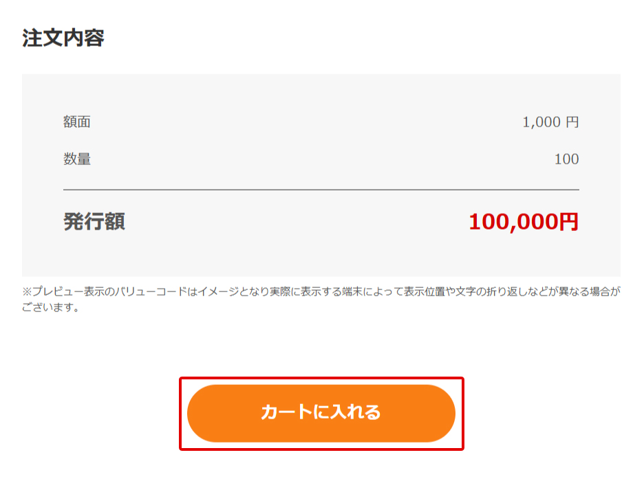 複数のバリューコードを注文する場合は一度カートに追加した後、ショッピングカート内の「買い物を続ける」ボタンから再度本画面に移動してください。