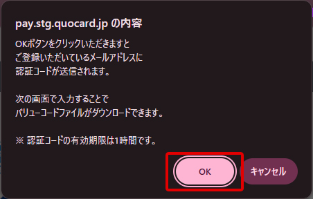 (3)ダウンロードに関するご案内を確認のうえ「OK」を押下
