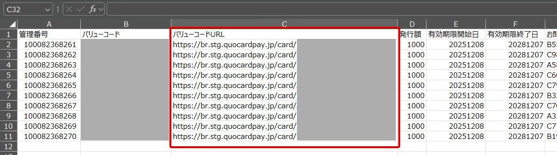| バリューコードURL | 1コード毎にユニークなURLです。 本URLにアクセスすることで、バリューコードをブラウザで表示・利用できます。 |